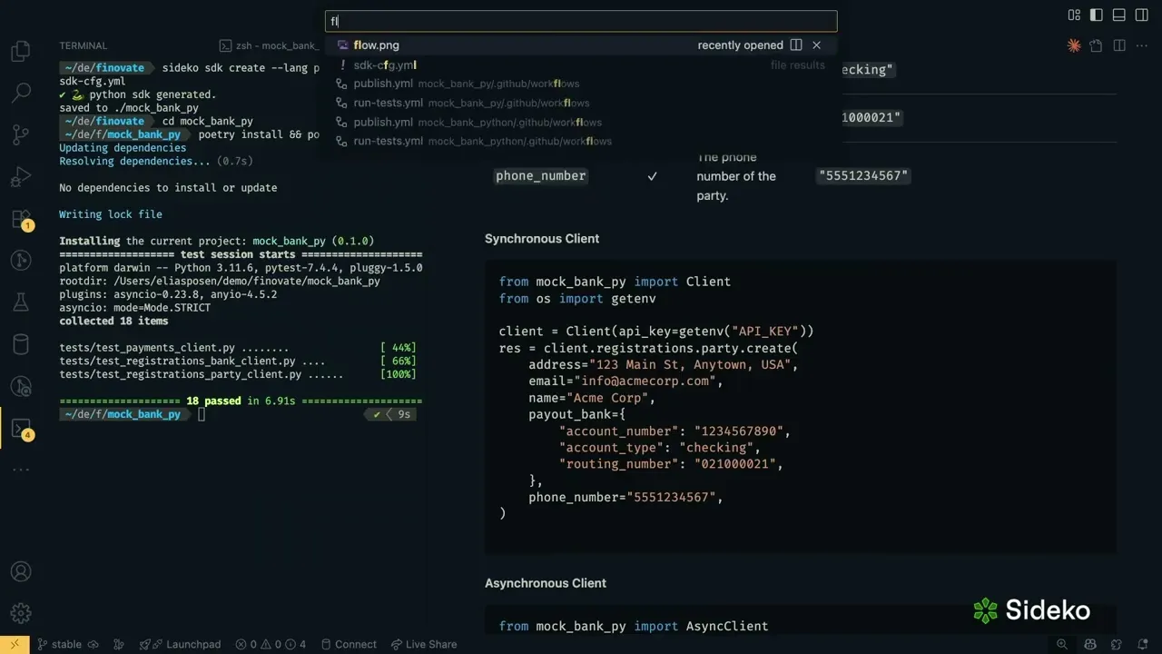 Sideko's deterministic engine generates reliable, production-ready SDKs, then guided AI customizes workflows to your exact needs.